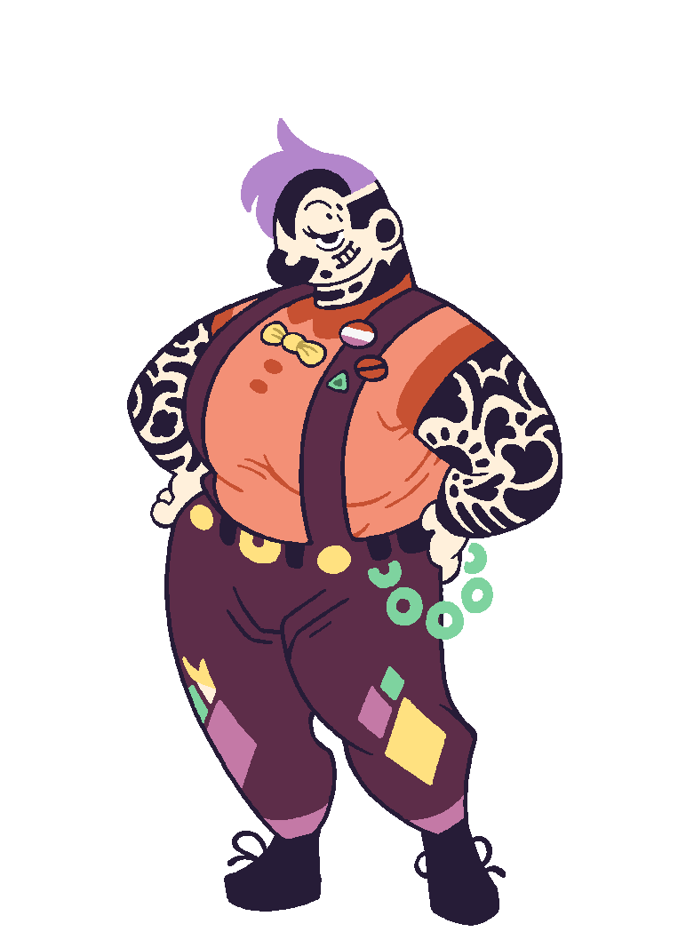 THE CHARACTERS of Queer’s Query consist of a wide variety of queer identities. One of my main goals for this project was to be able to create a cast that are all distinctly unique in terms of identity, body type, and personality. I believe representation in video games is a very important subject, being able to see yourself in a character you enjoy or look up to, especially in a fantastical setting, can be a great feeling, especially for queer youth.