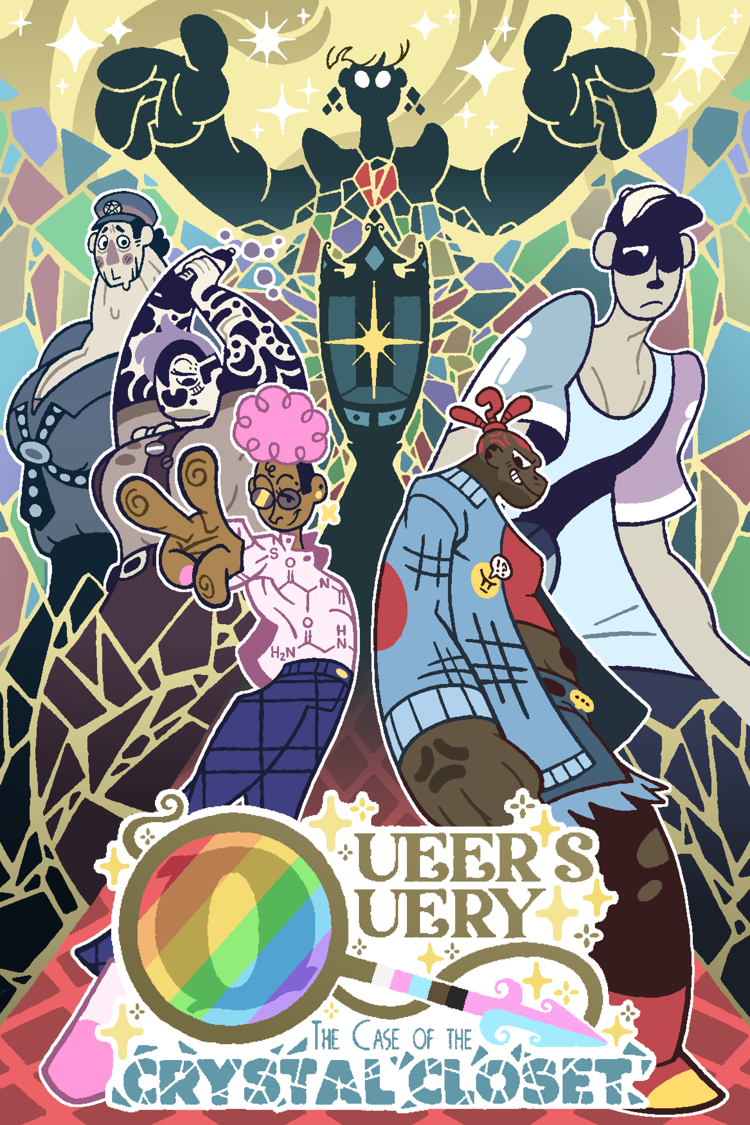 QUEER’S QUERY: THE CASE OF THE CRYSTAL CLOSET is a queer-centric muder mystery video game concept. Created as a hypothetical creative narrative and digital safe-space, the main goal I had in mind while creating Queer’s Query was to make an story with characters, concepts, and queer topics and issues that a queer youth and general audience can relate to or feel seen in.