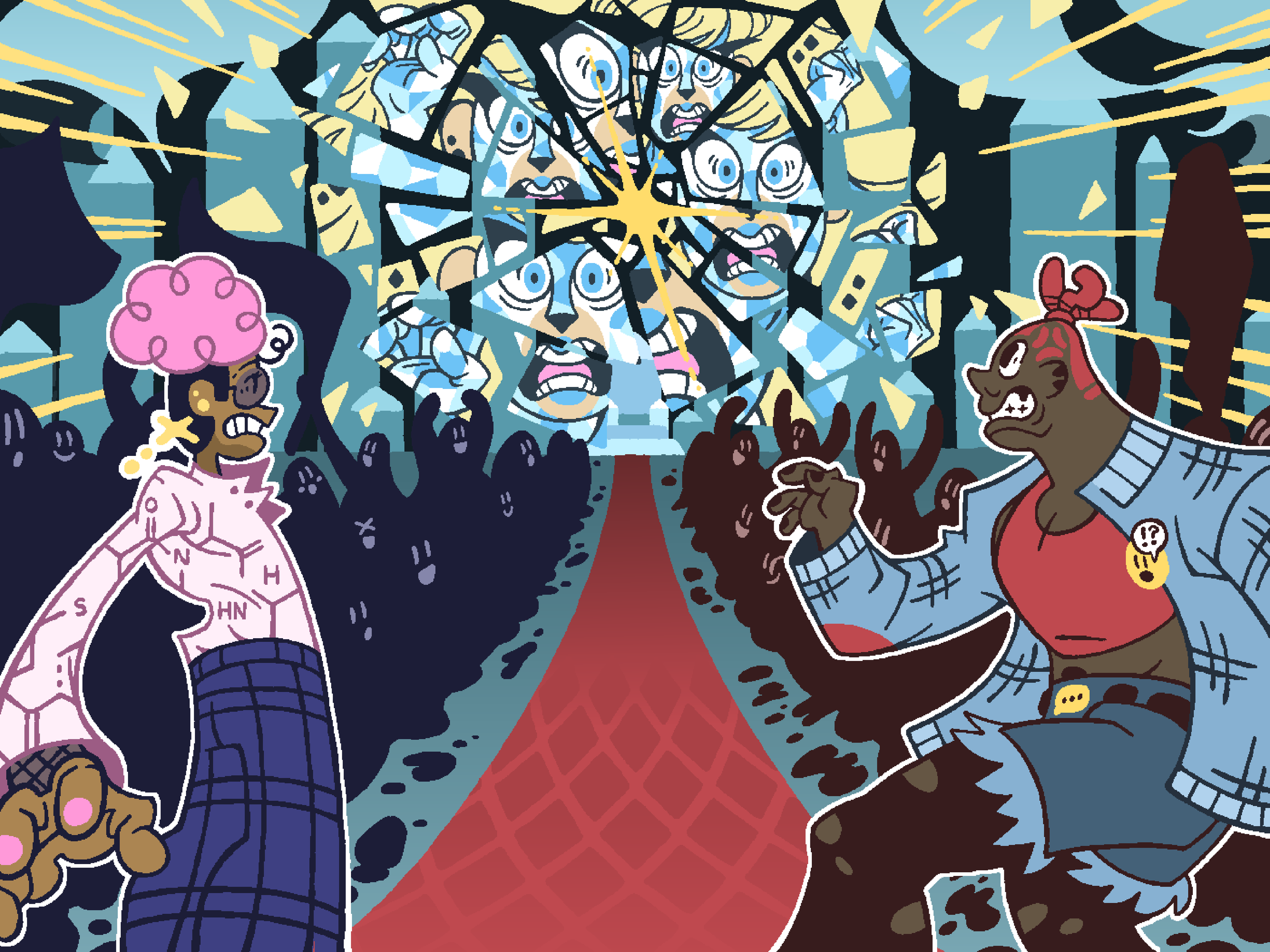 Flashing lights fill the streets and even flashier outfits flood them moreso as everyone is evactauted from the bar. Strangely enough, as police investigate the crime seen, Dorothy’s body has mysteriously vanished, now locked within her prived vanity, The Crystal Closet, shut behind three locks, and the keys to which are missing as well. Until a culprit is identified for the murder of Dorothy Dee Elle, nobody is allowed to leave the area. As Queen Dorothy’s biggest fans, Em and Ace take it upon themselves to use their smarts and wits to investigate, interrogate, and ultimately solve the murder before bar close, lest the Queen’s Castle be shut down for good by morning.