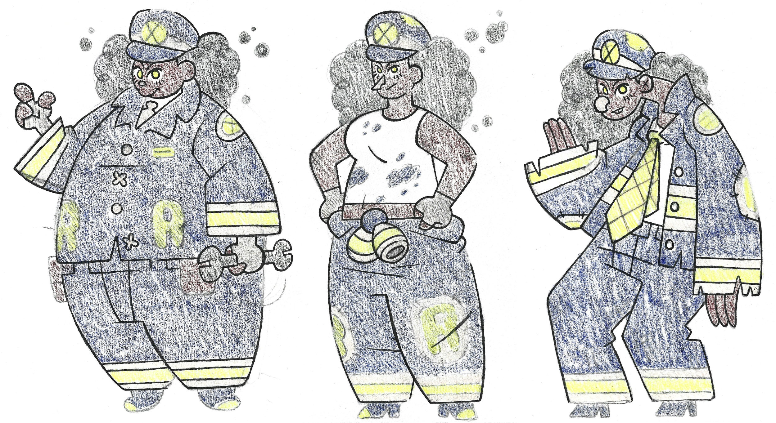 This illustration depicts The Conductor utilizing her metal bending ability to multitask in the conductor’s cabin. From steering the wheel, hammering in loose nails, and telling the cabins that their destination will be reached shortly, there’s nothing that The Conductor can’t do when she’s in her zone.